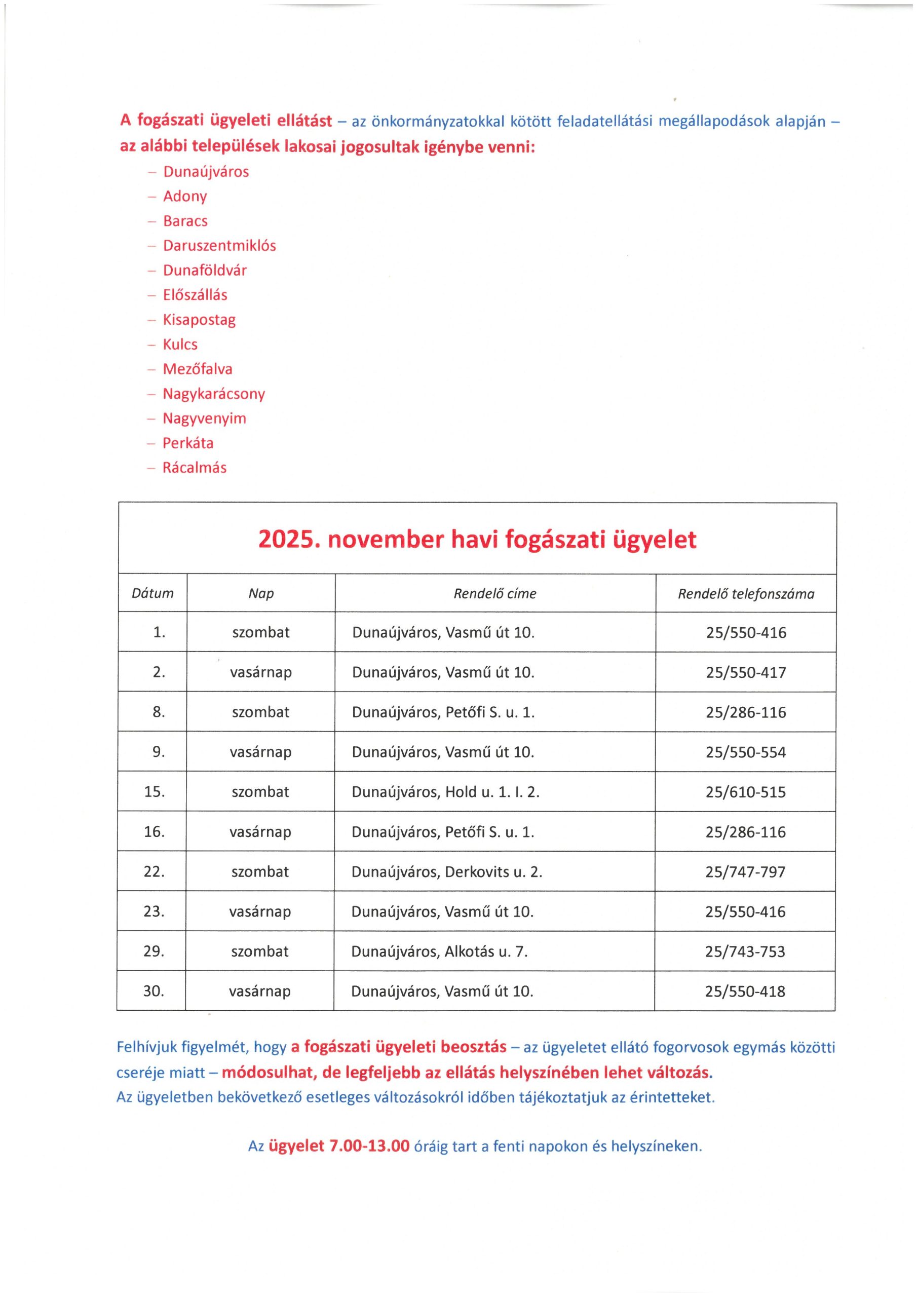 Orvosi ügyelet: Nagyvenyim, Fő u. 45. 25/506-201