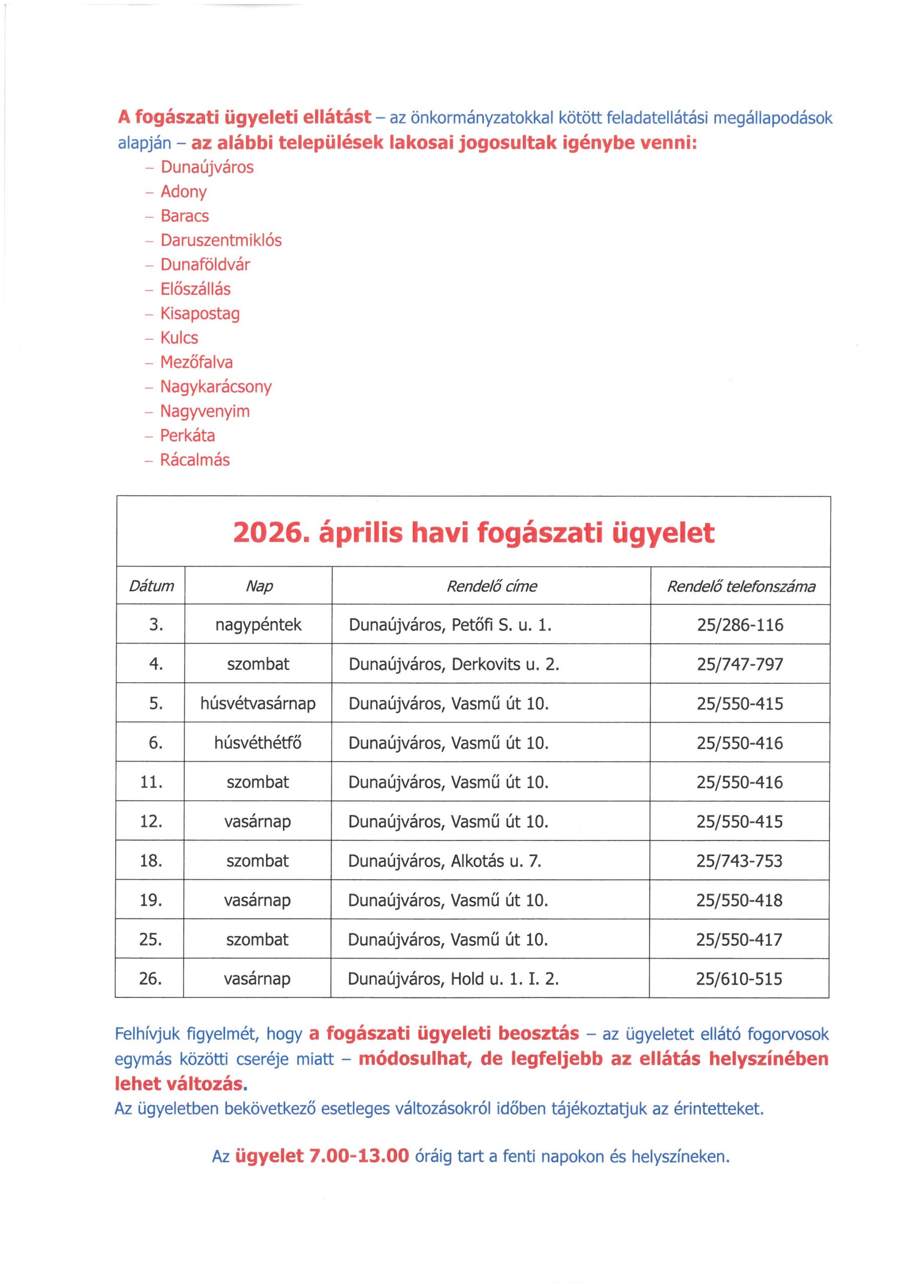 • Fogorvosi ügyelet